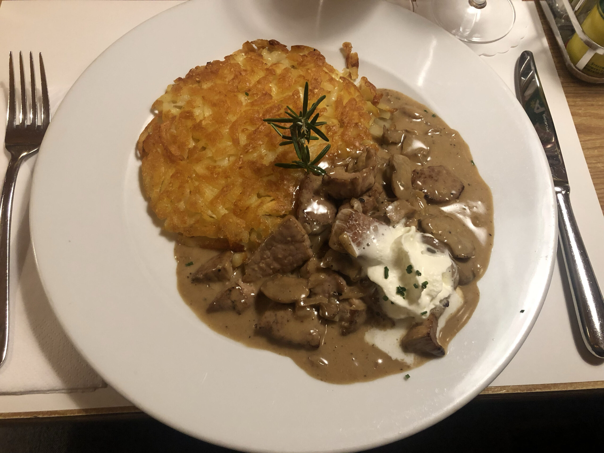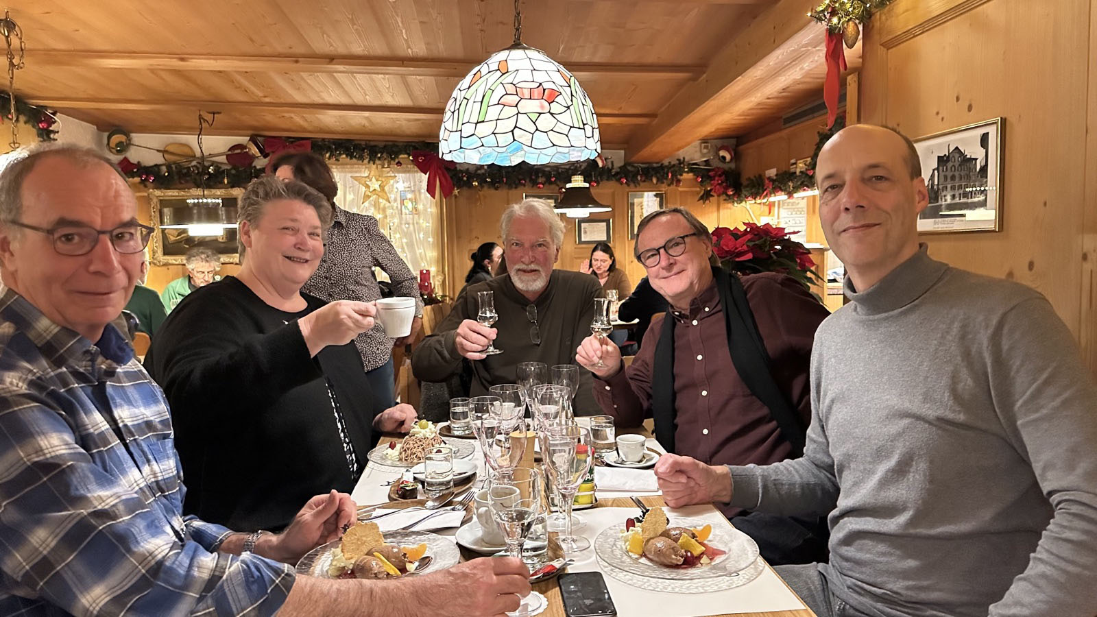 07. Dezember 2022 – Restaurant Oberhof 3.55/5 (5) Apéro: Bar am Egge Essen (inkl. Schlummi): Restaurant Oberhof Tagessuppe Nüsslisalat mit Ei Züri-Gschnetzlets Dessert: Vermicelles, Schoggi-Mousse und Grappa Kalbs oder Schweins-Cordon-Bleu mit Pommes Hirsch-Kotelette mit Rösti War einmal mehr super – Zum Wohl*